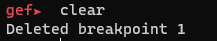 clear 명령어를 사용하면 특정 함수나 라인에 있던 breakpoint를 지울 수 있다.