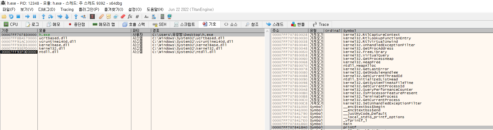 주소로 브레이크포인트를 잡을 수도 있고, 함수 이름으로 잡을 수도 있습니다.