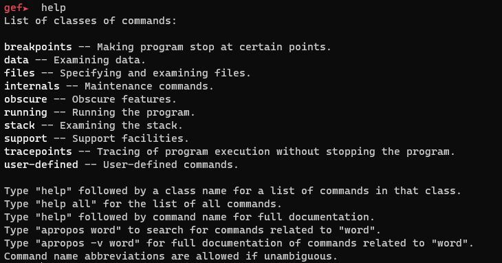 help 명령어를 통해 명령어의 리스트를 출력 할 수 있다.