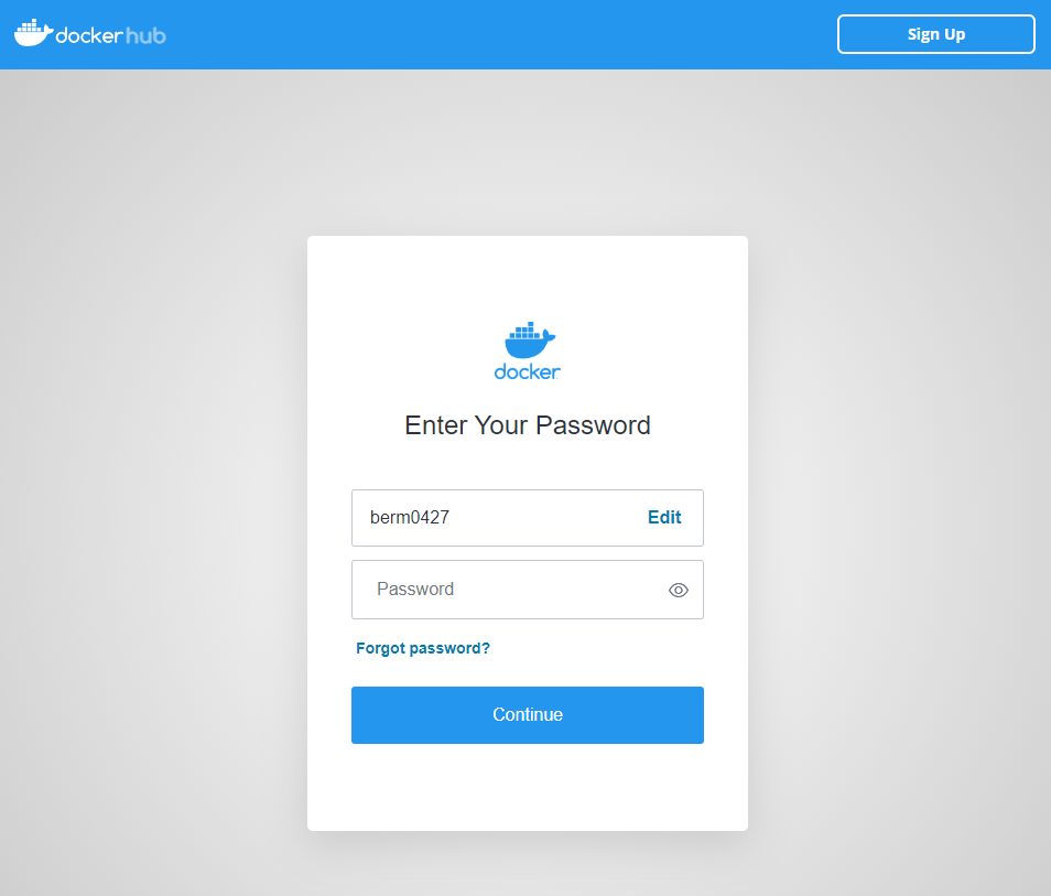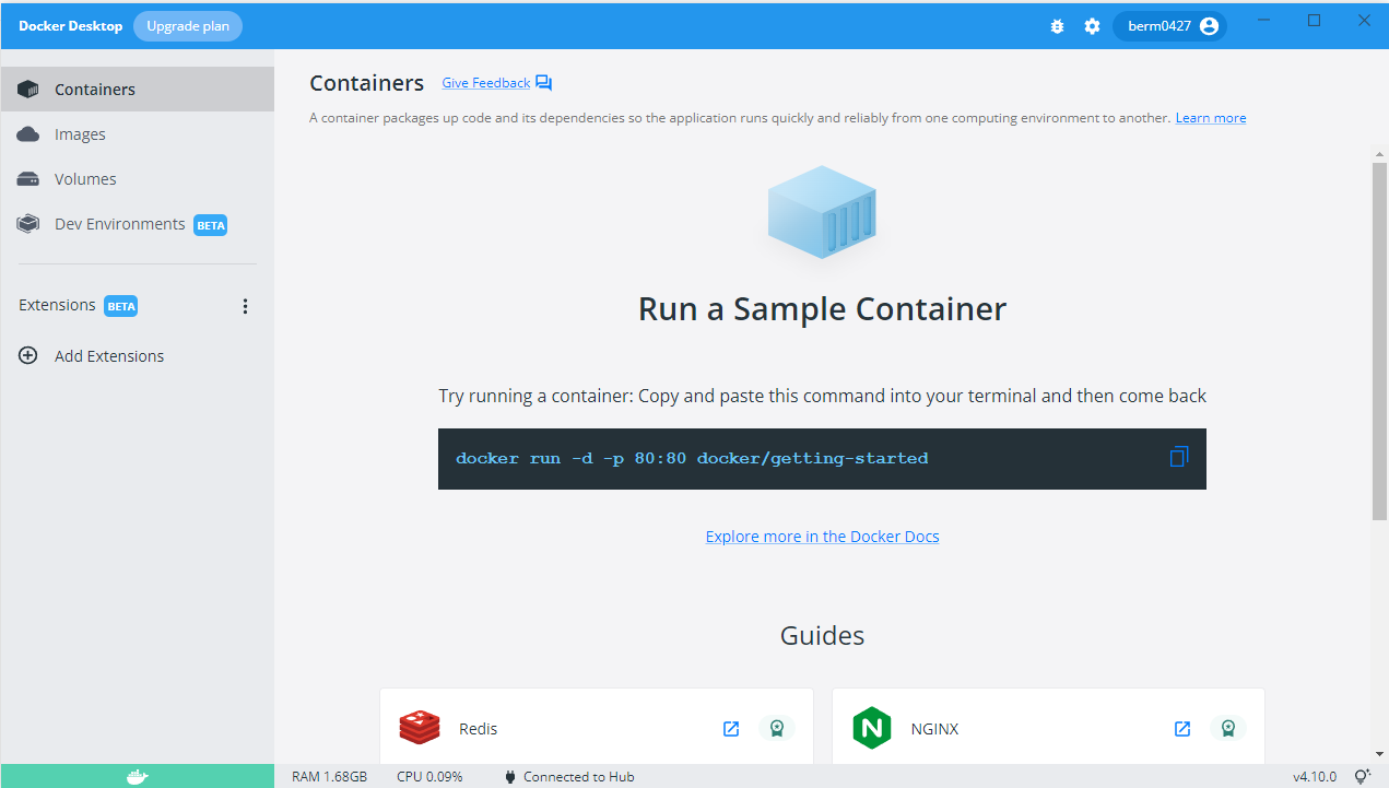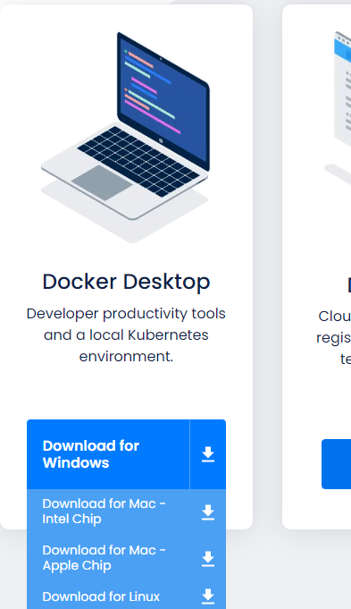 docker 프로그램에서 파란색 버튼을 누르고