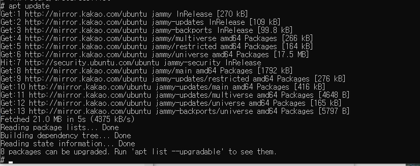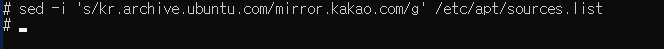$ sed -i 's/kr.archive.ubuntu.com/mirror.kakao.com/g' /etc/apt/sources.list # 한국
